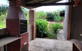 Com um lindo rio nos fundos da chácara;